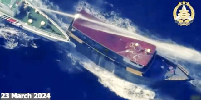 Selon l’armée philippine, l’attaque s’est produite au large de l’atoll Second Thomas, où des navires chinois sont déjà entrés en collision avec des navires philippins lors de précédentes confrontations ces derniers mois.