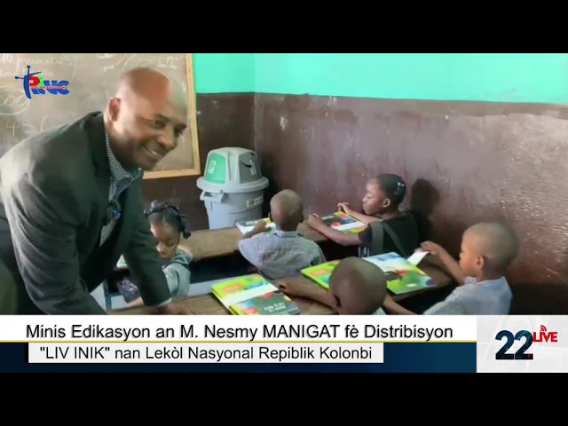 Minis Edikasyon an M. Nesmy MANIGAT fè Distribisyon “LIV INIK” nan Lekòl Nasyonal Repiblik Kolonbi #Rtvc #22Live #MS